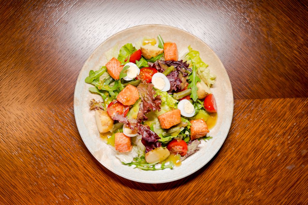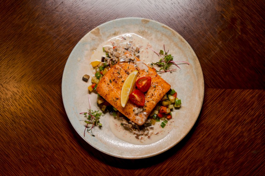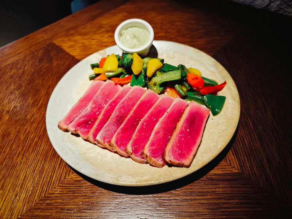 Нежное филе тунца, обжаренное до идеальной степени готовности, подается с ярким гарниром из свежих овощей «светофор», брокколи и стручковой фасоли. Легкий соус на основе авокадо с лимонными нотками придает блюду свежий и насыщенный вкус. Утонченный выбор для любителей здоровой и вкусной кухни!